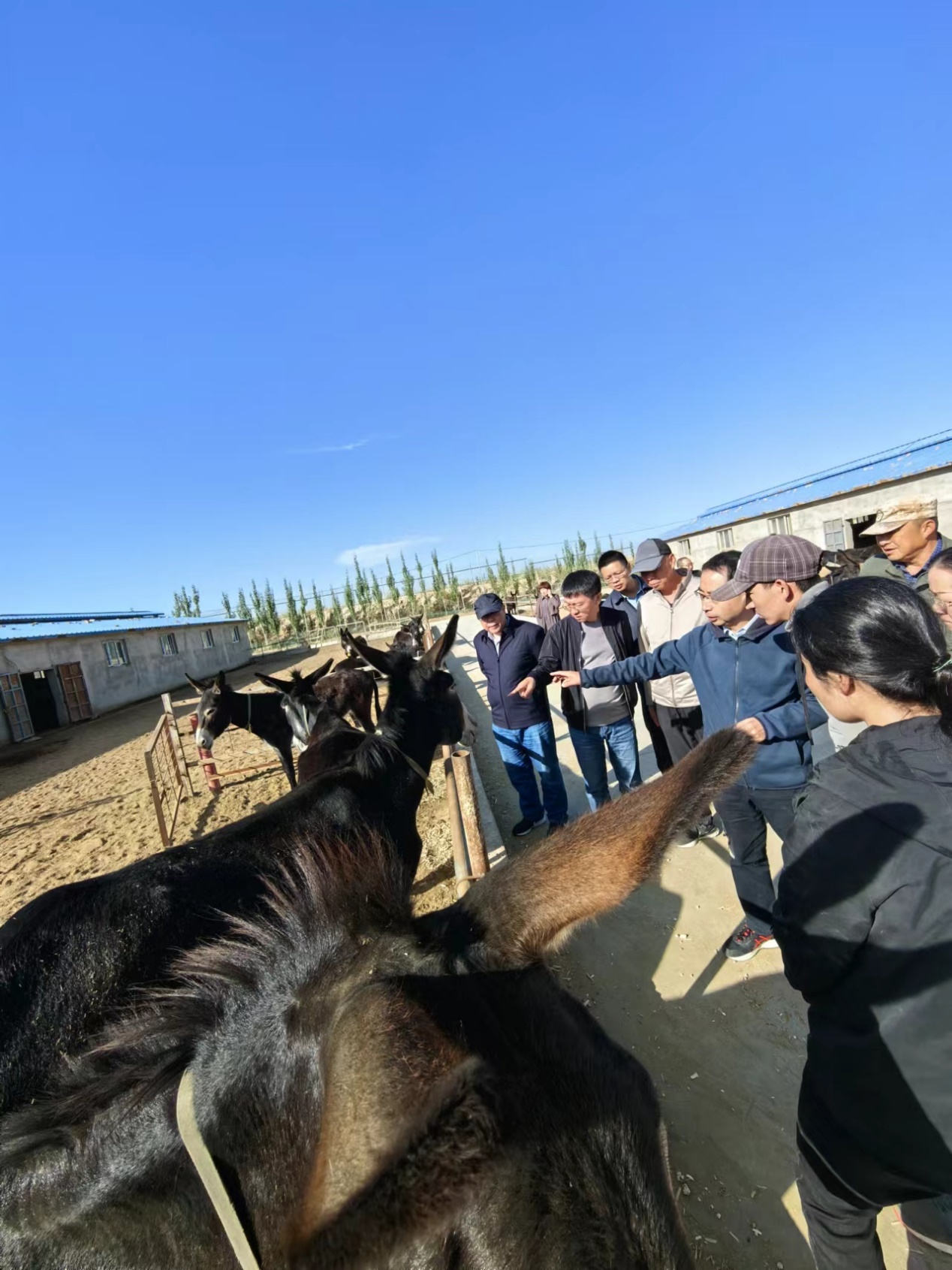 在新疆金胡楊牧業有限公司的調研考察中,專家團現場查看了驢群的飼養管理和健康狀況,探查了解了近幾年驢場驢病發生與治療情況,并現場解答了企業在日常養殖中遇到的驢疫病防治技術問題。通過向技術人員傳授演示驢常見病鑒定技巧、講解分析母驢不孕原因和肺炎診斷治療方法等,切實幫助企業解決生產問題、提升驢病防治能力。