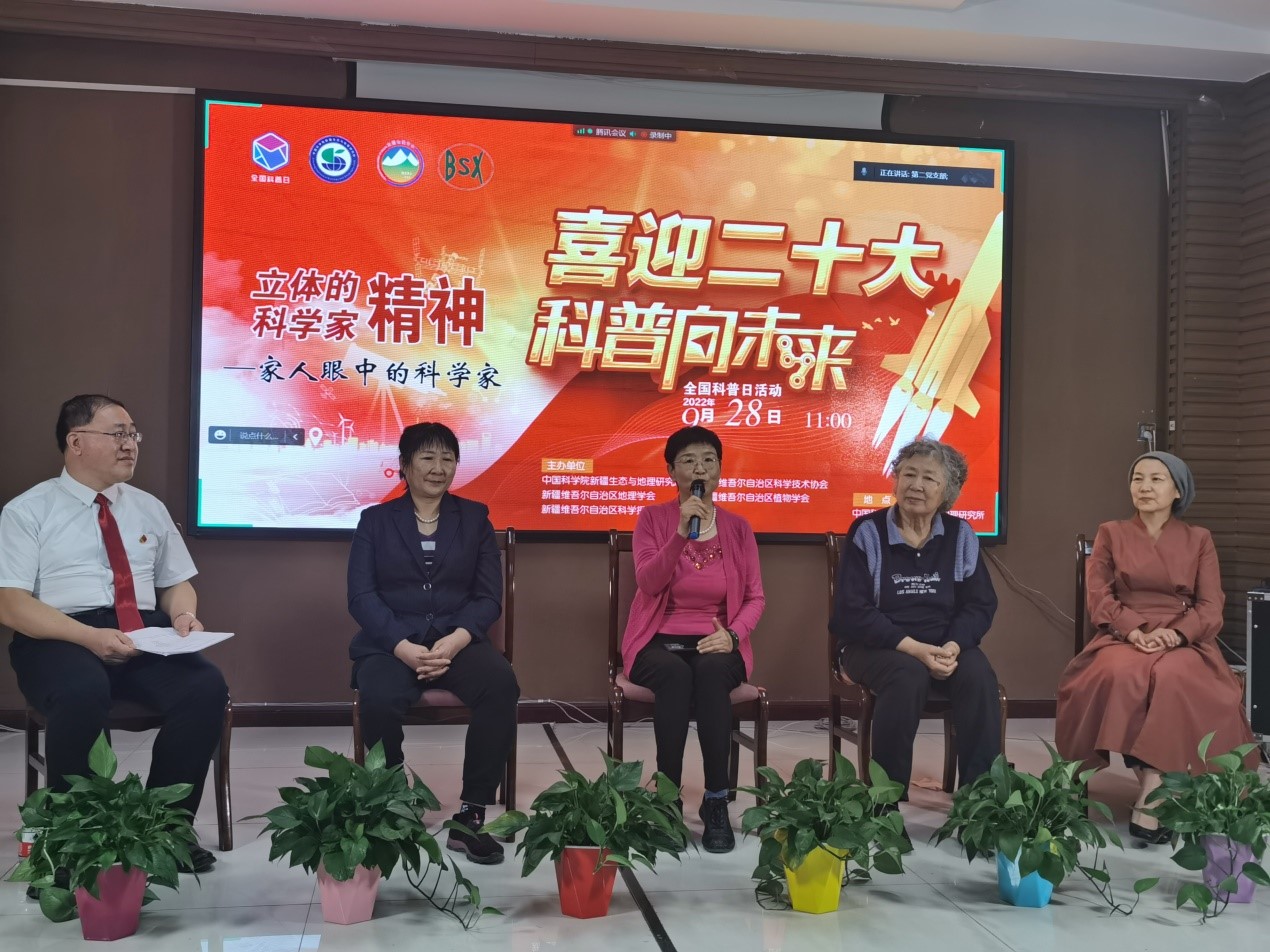 為了深入貫徹黨的十九大和十九屆歷次全會精神,完整準確貫徹新時代黨的治疆方略,進一步弘揚科學家精神,傳播科學文化,激發青年科技工作者的創新動力,喜迎黨的二十大到來;9月28日,中國科學院新疆生態與地理研究所、新疆維吾爾自治區科學技術協會、新疆地理學會等聯合開展了“喜迎二十大科普向未來”全國科普日暨“弘揚科學家精神喜迎二十大”的主題黨日活動。本次活動以“立體的科學家精神?家人眼中的科學家”為主題,采用對知名科學家家屬訪談及互動交流的形式,新疆地理學會、“彭加木突擊隊”隊員、新疆植物學會、新疆科學探險協會的會員共計近100人,在線上線下參加了此次活動,認真聆聽了新疆荒漠化防治領域四位知名科學家(夏訓誠、張鶴年、劉銘挺和徐新文)精彩紛呈的故事,了解了輝煌科學成就背后鮮為人知的小故事,感受了他們熱愛祖國、肩負使命、扎根邊疆、不怕困難、勇于探索、精益求精的擔當奉獻和事業追求精神,舍小家為大家而虧欠家人的內心苦楚,也感動于科學家家屬們默默付出的辛苦與偉大,領略了立體多維度的科學家精神風貌。