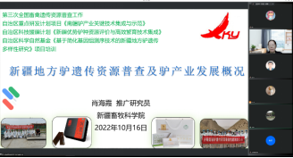 2022年10月30日上午,在山東省驢產業技術體系創新團隊培訓會——“驢產業公益大講堂”上,新疆畜牧獸醫學會會員、第三次全國畜禽遺傳資源普查技術專家組成員、中國畜牧業協會驢業分會副秘書長、中國驢產業專家委員會專家、新疆畜牧科學院畜牧研究所馬屬動物研究室主任肖海霞推廣研究員,以“新疆地方驢遺傳資源普查及驢產業發展概況”為題在大講堂進行了授課。