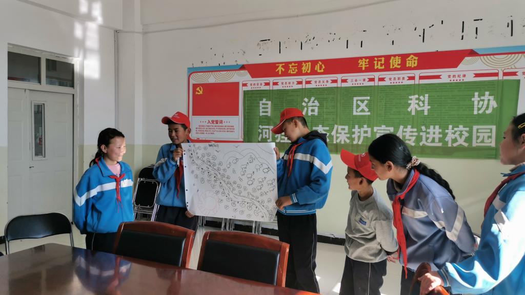 在“河貍保護主題小課堂”上,新疆山水環境保護與可持續發展中心的工作人員引導學生擔當生態保護宣傳員,同學們通過分組討論,結合參觀學習的知識,一起梳理關于家鄉與眾不同的特點及自然環境,加深了對家鄉生態環境和特有野生動植物的認識。