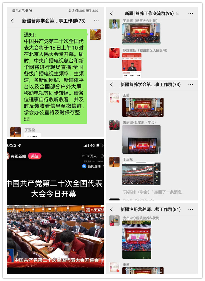 10月16日上午,舉世矚目的中國共產(chǎn)黨第二十次全國代表大會在京盛大開幕。新疆營養(yǎng)學(xué)會所有會員無不心潮澎湃、歡欣鼓舞,大家以集中收看、居家收看或以在工作崗位上履職盡責(zé)的形式迎接黨的二十大勝利召開。