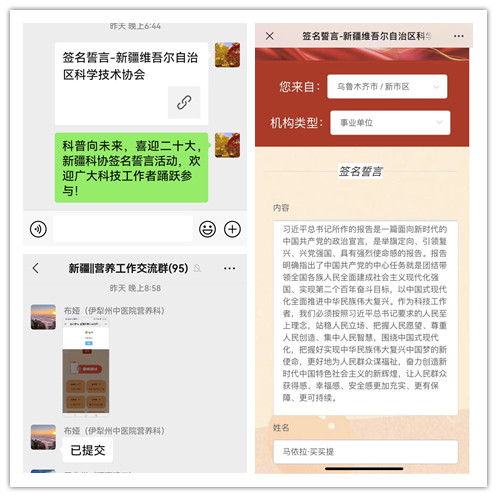 新疆營養(yǎng)學(xué)會全體科技工作者一致表示,黨的二十大報告,是開啟新征程的綱領(lǐng)性文獻,新時代10年的偉大變革,在探月探火、載人航天、深海深地探測、超級計算機、衛(wèi)星導(dǎo)航、量子信息、核電技術(shù)、大飛機制造、生物醫(yī)藥等方面取得的重大成果偉大成就催人奮進。新時代新征程中國共產(chǎn)黨的使命任務(wù),使我們感到前景光明,使命在肩、責(zé)任重大。要深刻領(lǐng)悟“兩個確立”的決定性意義,進一步增強“四個意識”、堅定“四個自信”、做到“兩個維護”,立足本職,自信自強、守正創(chuàng)新,踔厲奮發(fā)、勇毅前行,為深入貫徹落實黨的二十大精神和《“健康中國2030”規(guī)劃綱要》要求作出應(yīng)有貢獻。