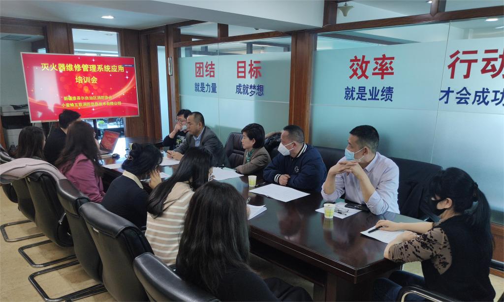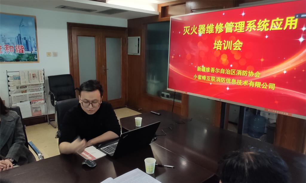 為了加強滅火器維修技術機構和操作人員行業自律管理,進一步規范滅火器維修技術服務行為,維護行業市場秩序,確保服務質量,2023年2月23日,新疆消防協會會同小蜜蜂互聯消防信息技術有限公司,以線上線下形式組織開展了滅火器維修管理系統應用培訓。新疆消防協會黨支部書記、秘書長閆懷宣和秘書處工作人員及部分滅火器維修企業代表在協會辦公室參加了培訓和座談交流。