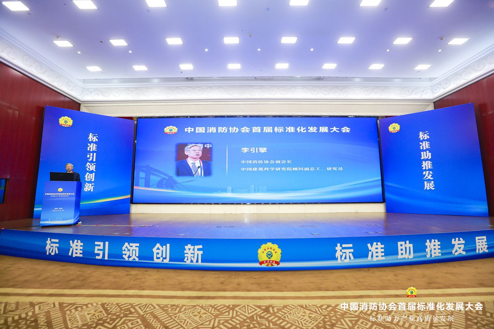 由中國消防協會主辦,河南省消防協會承辦的“首屆消防標準化發展大會”于2023年11月9日-10日在河南省鄭州市紫荊山賓館召開,大會采取政策宣講、主旨演講、展覽展示、標準宣貫、頒證儀式、互動交流、團體標準需求調研座談等形式召開。中國消防協會副會長李引擎、馬維光以及國家市場監督管理總局標準創新司、中國標準化研究院、應急管理部上海消防研究所、應急管理部天津消防研究所、應急管理部四川消防研究所、應急管理部沈陽消防研究所、應急管理部消防產品合格評定中心、北京科技大學、中國警察大學和全國各地省級消防協會領導出席大會。新疆消防協會會長張照雄、秘書長閆懷宣及會員企業代表等參加大會。