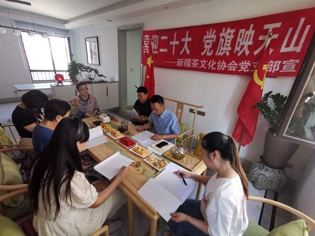 為慶祝中國共產黨成立101周年,6月30日下午,新疆茶文化協會黨支部在烏魯木齊中海九號公館1號樓1單元701室協會新址舉辦主題為“喜迎二十大 黨旗映天山 ”黨日活動。活動由新疆茶文化協會黨支部書記王洪主持。