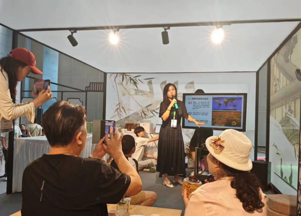 7月14日,在2024 新疆國際茶文化博覽會(以下簡稱 2024 新疆茶博會)的“一書一茶·宋韻茶空間“,新疆園藝學會理事江虹應邀參加新疆雪菊茶文化分享與品鑒活動。2024新疆茶博會于7月12日至7月15日在新疆國際會展中心舉行,參展品類涵蓋六大茶類、茶具、茶器、茶工藝品等全產業鏈展品,并聚焦茶文化、茶藝展演、茶文旅推介等多個領域。