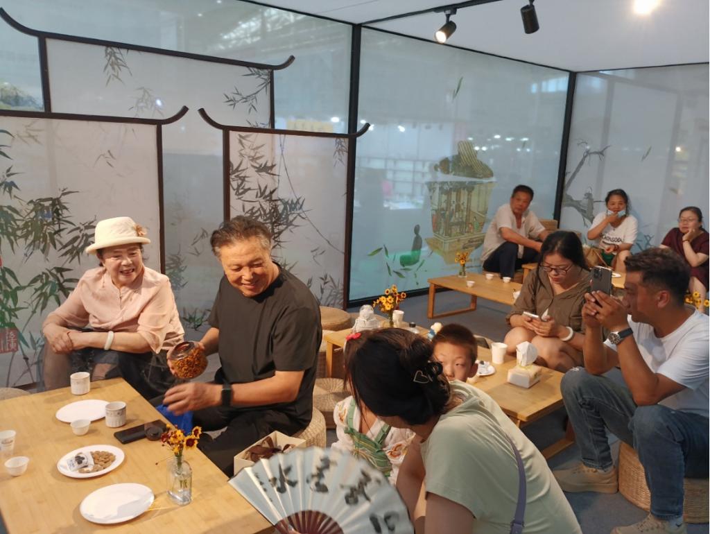 逛展市民品嘗雪菊茶現場