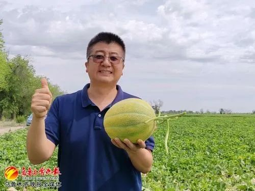 新疆農業科學院哈密瓜研究中心副主任、國家西甜瓜產業技術體系特色甜瓜改良崗位科學家、自治區西甜瓜產業技術體系副首席張學軍研究員舉著此次選育出的甜瓜新品系VH7,向大家展示。記者江斌偉攝。