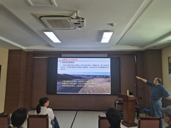 中國(guó)科學(xué)院新疆生態(tài)與地理研究所國(guó)家荒漠-綠洲生態(tài)建設(shè)工程技術(shù)研究中心主任、新疆地理學(xué)會(huì)理事徐新文研究員應(yīng)邀以《沒有荒涼的沙漠,更無荒涼的人生——30年扎根大漠瀚海 奮斗創(chuàng)造人間奇跡》為題,做了一場(chǎng)精彩的報(bào)告。徐老師結(jié)合自己豐富的防沙治沙工作經(jīng)歷,以中醫(yī)治病作比,全面系統(tǒng)形象地闡述了如何實(shí)現(xiàn)“因地制宜、因害設(shè)防”,重點(diǎn)結(jié)合塔里木沙漠公路防沙工程科研過程,講述輝煌工程業(yè)績(jī)背后科學(xué)家們攻堅(jiān)克難、創(chuàng)新進(jìn)取、嚴(yán)謹(jǐn)治學(xué)、求真務(wù)實(shí)的故事,體現(xiàn)了新疆一代代治沙科學(xué)家學(xué)以致用、服務(wù)國(guó)家的家國(guó)情懷。同時(shí),結(jié)合正在開展的防沙治沙實(shí)踐,與大家進(jìn)行探討交流。參會(huì)黨員同志感觸很多,收獲很多,深感“紙上得來終覺淺,絕知此事要躬行”,從掌握科學(xué)知識(shí)到靈活應(yīng)用還要下很多功夫!