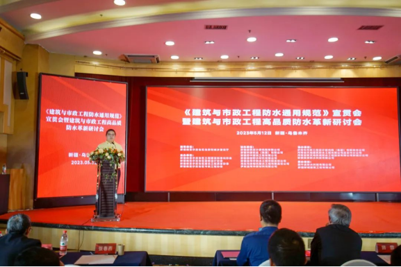 2023年5月12日下午,國家標準《建筑與市政工程防水通用規范》(GB55030-2022)宣貫會暨建筑與市政工程高品質防水革新研討會在新疆烏魯木齊順利召開。本次宣貫會由自治區住房和城鄉建設廳作為指導單位,新疆工程建設標準化協會、新疆勘察設計協會、新疆建設工程質量協會、新疆市政工程協會聯合主辦,區內從事建筑相關設計、施工、監理、檢測、防水企業等單位的330余名代表參加了本次會議。
