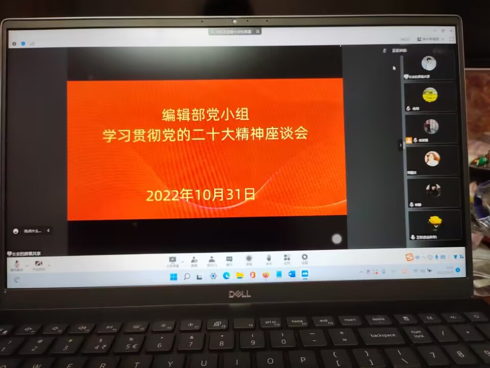 大家一致表示,將認真學習領會黨的二十大精神,更加緊密地團結在以習近平同志為核心的黨中央周圍,以黨的二十大精神為指導,踔厲奮發,勇毅前行,全面落實意識形態工作責任制,鞏固壯大奮進新時代的主流媒體思想輿論,廣泛踐行社會主義核心價值觀,奮力做好新時代期刊工作和學會工作,為全面建設社會主義現代化國家、全面推進中華民族偉大復興作出新的更大貢獻。