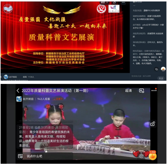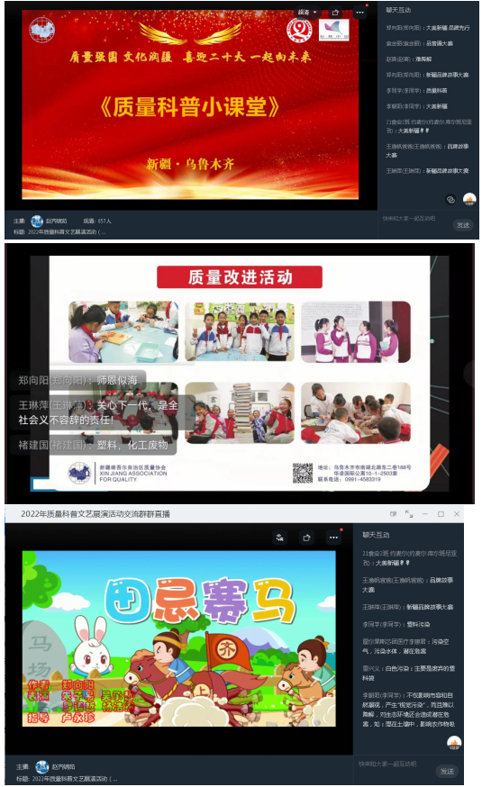 為深入貫徹黨的十九大和十九屆歷次全會精神,堅持新發(fā)展理念、普及質(zhì)量科學(xué)知識。新疆質(zhì)量協(xié)會積極響應(yīng)《關(guān)于開展2022年全國“質(zhì)量月”活動的通知》、《關(guān)于舉辦2022年全國科普日活動的通知》文件要求和整體工作部署。9月18日,協(xié)會以線上直播形式,組織開展了“質(zhì)量強國、文化潤疆 喜迎二十大 一起向未來”為主題的質(zhì)量科普文藝展演、有獎知識競答活動。