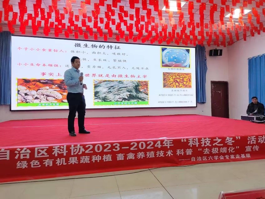 為深入貫徹落實黨的二十大精神,進一步發揮學會專家、技術人才優勢,2024年1月15日-17日,新疆科技期刊編輯學會、新疆植物保護學會、新疆微生物學會、新疆農科院工會等單位聯合新疆農科院喀什駐村工作隊圍繞綠色有機果蔬種植、畜禽養殖技術、科普“去極端化”宣傳等內容,開展了貼近基層、貼近群眾、貼近生活的2023-2024年自治區科協“科技之冬”活動。