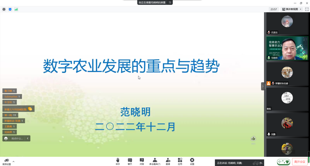 新疆IT三會專家委副主任委員范曉明以《數字農業發展的重點與趨勢》為題,從加快數字化轉變,迎接農業4.0時代、從十個方面梳理了數字農業重點,并從數智化、工廠化和綠色生態化三個方向交流了數字農業發展的趨勢。