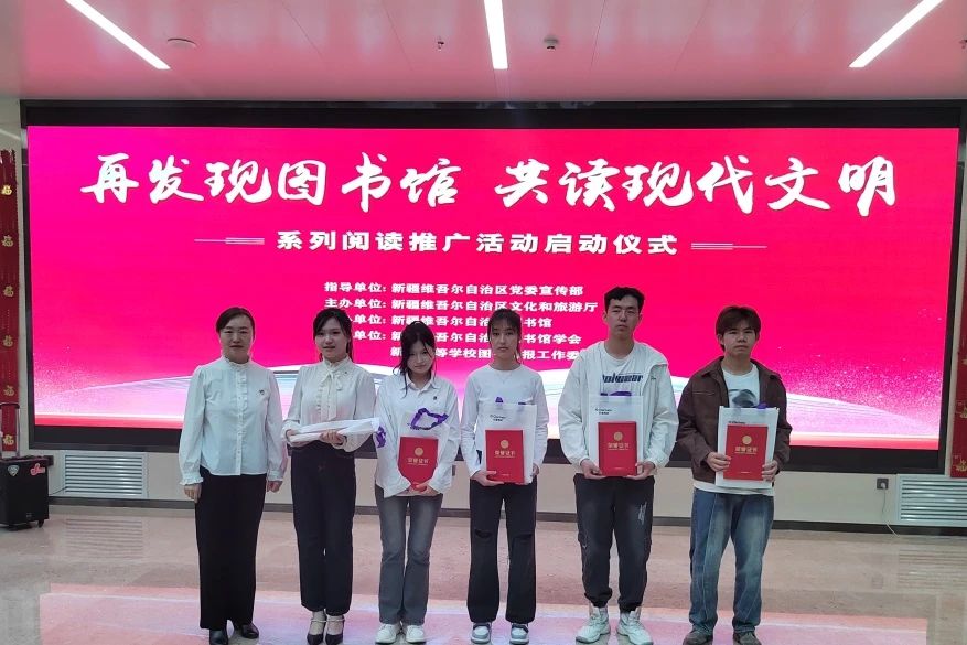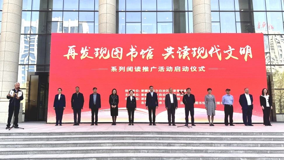 4月23日,“再發(fā)現(xiàn)圖書館 共讀現(xiàn)代文明”系列閱讀推廣活動(dòng)啟動(dòng)儀式在新疆圖書館正式啟動(dòng)。活動(dòng)由自治區(qū)黨委宣傳部指導(dǎo),自治區(qū)文化和旅游廳主辦,新疆地區(qū)各級(jí)公共、高校、科研院所圖書館聯(lián)合舉辦,新疆圖書館設(shè)立主會(huì)場(chǎng),新疆大學(xué)圖書館、哈密市圖書館、和田地區(qū)圖書館、塔城地區(qū)圖書館、和靜縣東歸圖書館、富蘊(yùn)縣圖書館、九州通藥業(yè)等設(shè)分會(huì)場(chǎng),全疆各地圖書館同步拉開2024年全民閱讀帷幕。