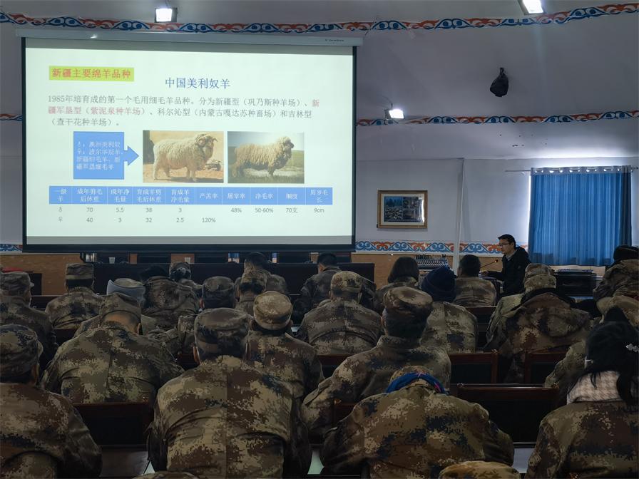 新疆畜牧獸醫學會會員新疆農墾科學院石國慶研究員、楊華研究員一行結合當前綿羊產羔期間的特殊時期,利用各自專業優勢,分別從綿羊繁殖技術應用、母羊階段化精準飼養管理技術、疫病保健及品種改良選育等方面開展了系統授課,給連隊職工群眾和養殖戶送去了春節過后的科技“大餐”。