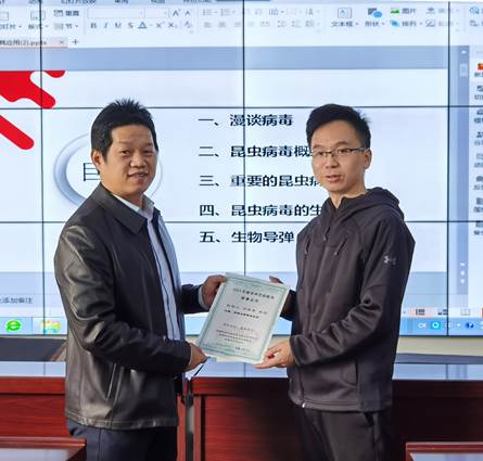梁振普教授以科學認知新冠病毒為引子,從病毒的發現歷史、生物學分類、形態學特征、入侵機理,以及昆蟲病毒分離、培養和昆蟲病毒感染后的行為學等方面,系統介紹了病毒學知識和學科前沿進展,并以松毛蟲質型多角體病毒在生物防控應用為例,詳細介紹了“生物導彈”技術,即以昆蟲病毒流行病學為基礎,利用卵寄生蜂為傳播媒體,將病毒傳遞害蟲,從而使害蟲發生種群病毒病,起到大規模殺死目標害蟲的技術,以及取得的階段性成果。梁振普教授報告深入淺出,將一個個生澀的概念和艱難發現與生活實例相結合,風趣生動,躍然紙上,參加報告會的專家學者紛紛表示報告內容豐富,受益匪淺。