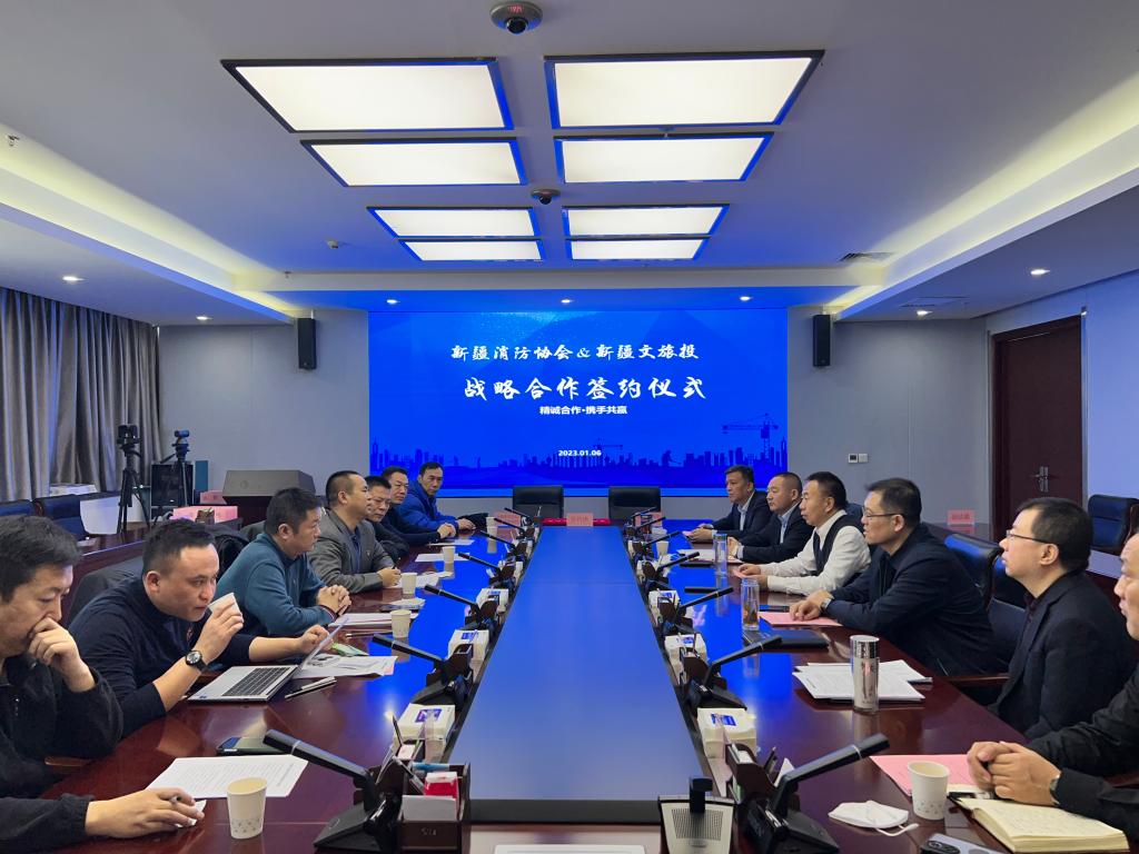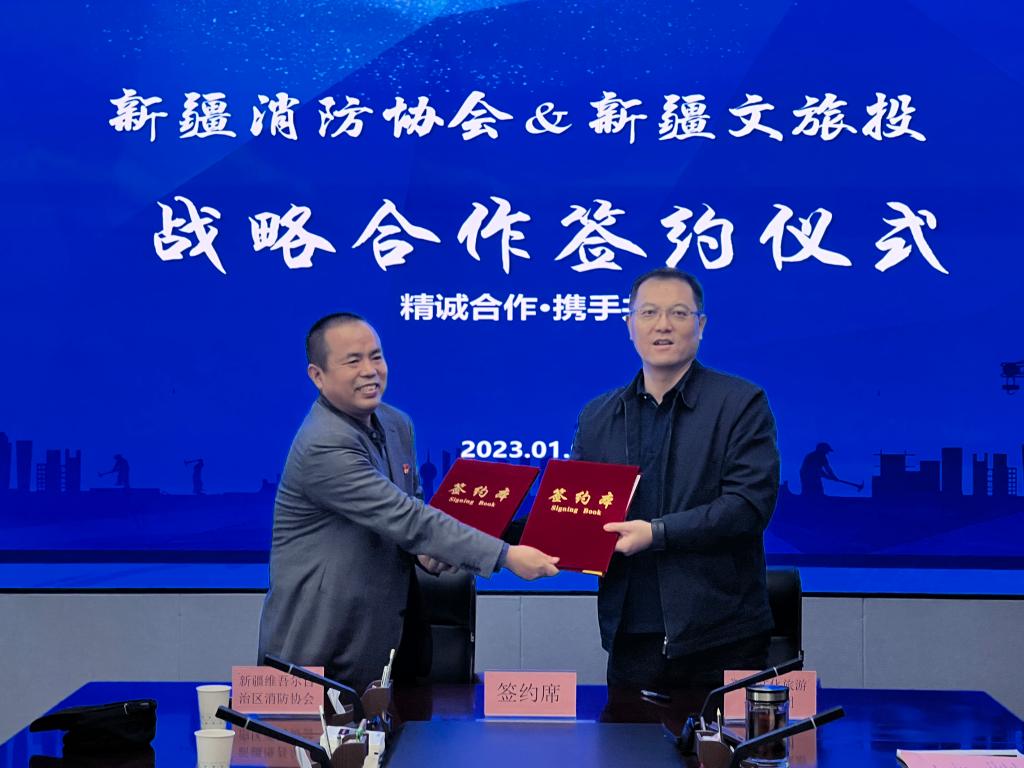 為深入學(xué)習(xí)貫徹黨的二十大精神,貫徹安全發(fā)展理念,履行好行業(yè)協(xié)會社會職能,筑牢安全發(fā)展“防火墻”,推進會企深度合作,助力企業(yè)高質(zhì)量發(fā)展,2023年1月6日上午,新疆消防協(xié)會與新疆文化旅游投資集團有限公司在新疆交通智能科技大廈22樓會議室舉行《合作框架協(xié)議》簽約儀式。簽約儀式由新疆文化旅游投資集團有限公司安全管理部負責(zé)人劉巖峰主持,新疆文化旅游投資集團有限公司黨委書記、董事長王宏江和新疆消防協(xié)會黨支部書記、秘書長閆懷宣出席簽約儀式并講話。