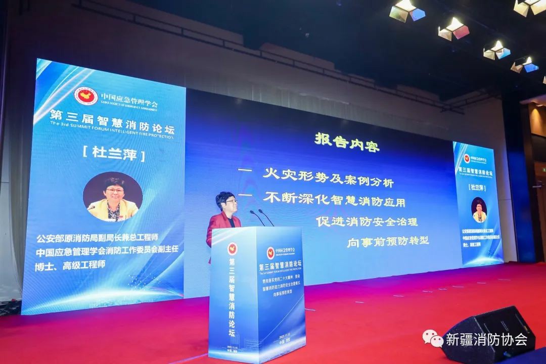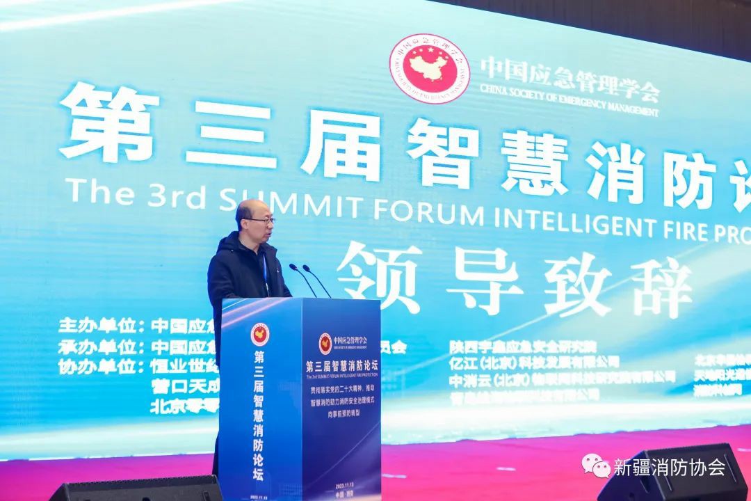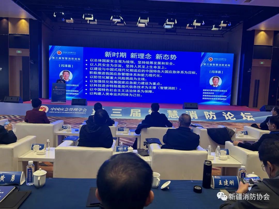 為總結(jié)推廣各地近年來(lái)建設(shè)、應(yīng)用“智慧消防”手段提升火災(zāi)防控和滅火救援能力的成效和經(jīng)驗(yàn),促進(jìn)智慧消防高質(zhì)量發(fā)展,著力在防范化解重大安全風(fēng)險(xiǎn)方面發(fā)揮更大作用,2023年11月13日,由中國(guó)應(yīng)急管理學(xué)會(huì)主辦的“第三屆智慧消防論壇”在西安舉辦。論壇由公安部原消防局政治委員、中國(guó)應(yīng)急管理學(xué)會(huì)副會(huì)長(zhǎng)、中國(guó)應(yīng)急管理學(xué)會(huì)消防工作委員會(huì)主任王沁林主持,國(guó)家減災(zāi)委員會(huì)秘書長(zhǎng)、應(yīng)急管理部原副部長(zhǎng)、中國(guó)災(zāi)害防御協(xié)會(huì)會(huì)長(zhǎng)鄭國(guó)光,原國(guó)務(wù)院參事、原國(guó)務(wù)院應(yīng)急管理專家組組長(zhǎng)、國(guó)家減災(zāi)委專家委員會(huì)原副主任閃淳昌,原公安部消防局副局長(zhǎng)兼總工程師、中國(guó)應(yīng)急管理學(xué)會(huì)消防工作委員會(huì)副主任、博士、高級(jí)工程師杜蘭萍及全國(guó)部分省級(jí)協(xié)會(huì)負(fù)責(zé)人、消防工作委員會(huì)委員、專家代表出席,新疆消防協(xié)會(huì)會(huì)長(zhǎng)張照雄和秘書長(zhǎng)閆懷宣等應(yīng)邀出席。