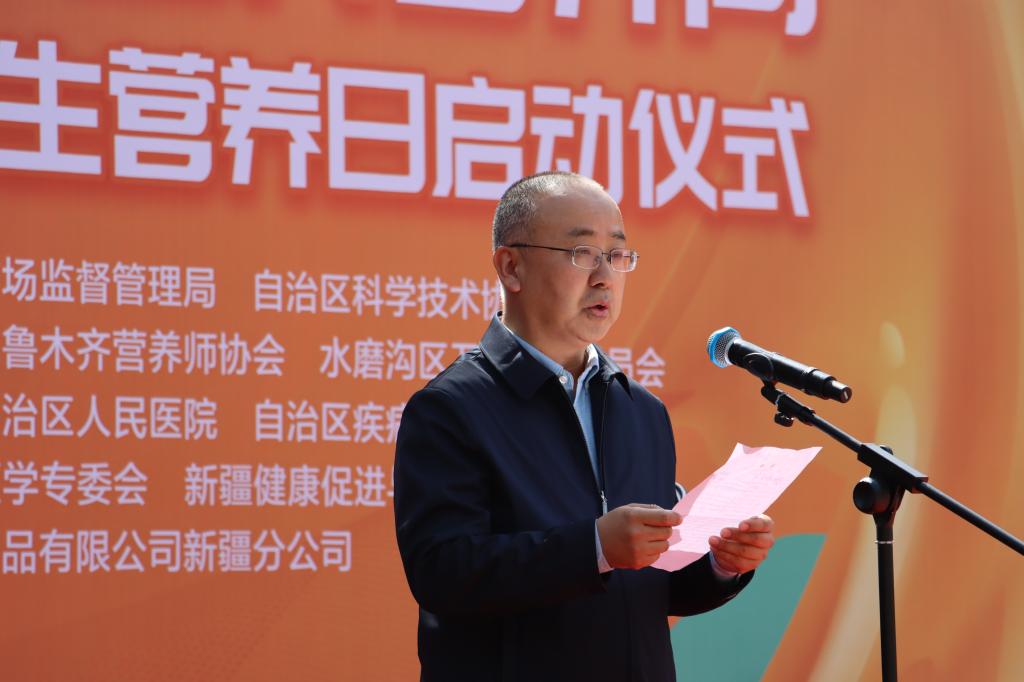 新疆醫(yī)學會副會長、自治區(qū)衛(wèi)生健康行業(yè)新興組織黨委書記鄒小廣,自治區(qū)科協(xié)黨組成員、副主席擺曉宏,自治區(qū)市場監(jiān)督管理局二級巡視員彭繼東,自治區(qū)教育廳體衛(wèi)藝工作處四級調(diào)研員王倩分別在啟動儀式上致辭。新疆營養(yǎng)學會理事長李莉同志針對2024年全民營養(yǎng)周和5·20中國學生營養(yǎng)日傳播主題核心信息進行解讀。