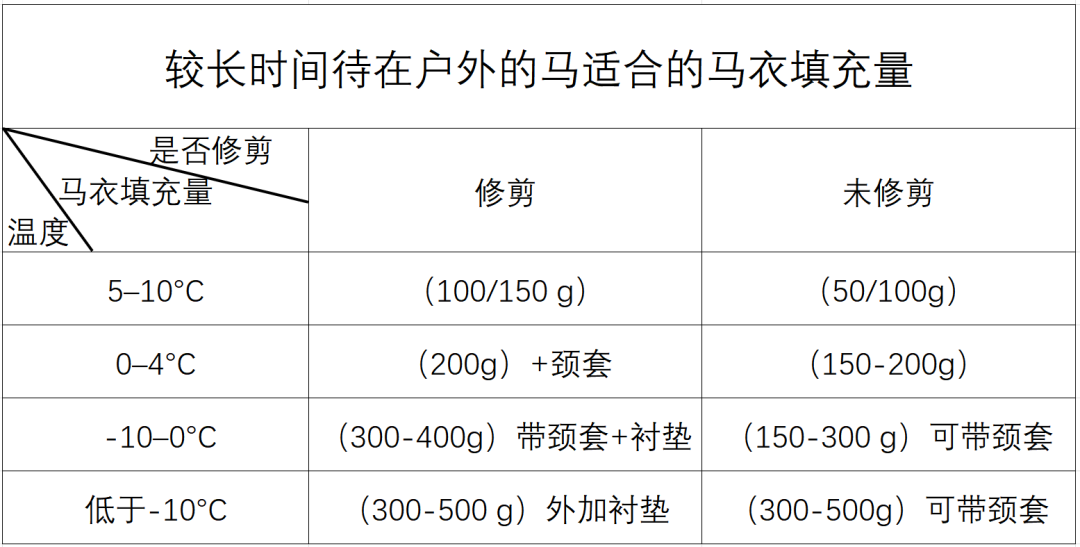下附不同溫度適合的馬衣填充量,趕快收藏起來吧!