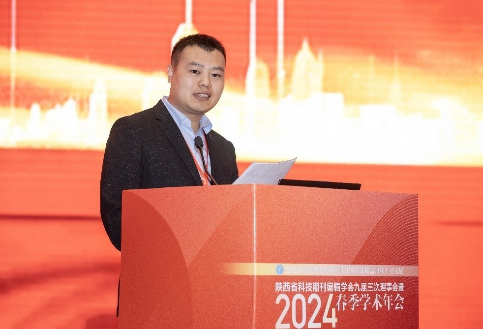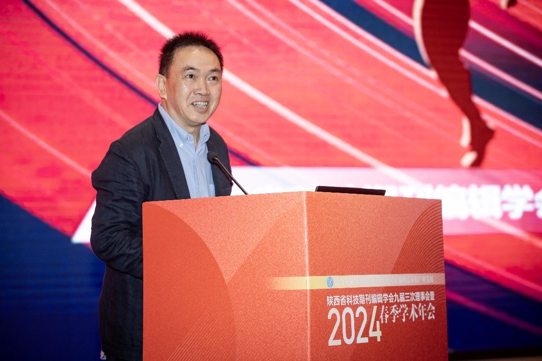 陜西省科技期刊編輯學會石應江理事長做了題為《建設高質量科技期刊 服務國家戰略需求和產業發展》的工作報告,提出了學會年度工作的三個重點:一是集中力量推動期刊高質量發展,二是服務國家戰略需求和產業發展,三是積極引領青年編輯成長。