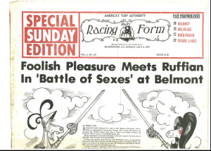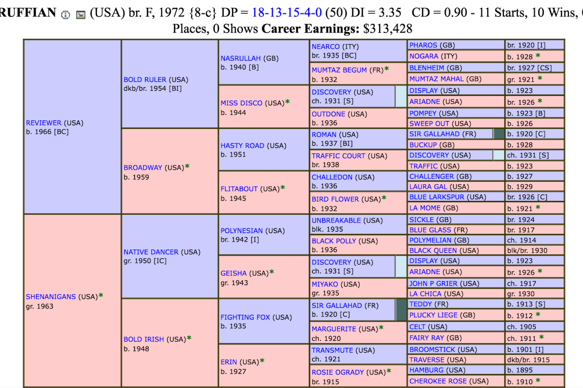 1972年,一只深褐色的小母馬出生在美國肯塔基州的克萊伯恩農場,馬主卻給它起了一個男孩子的名字—“暴徒”(Ruffian),因為它身材高大,虎背熊腰,根本不像一匹母馬。后來“暴徒”的賽事生涯,更加證明了馬主的這一判斷。