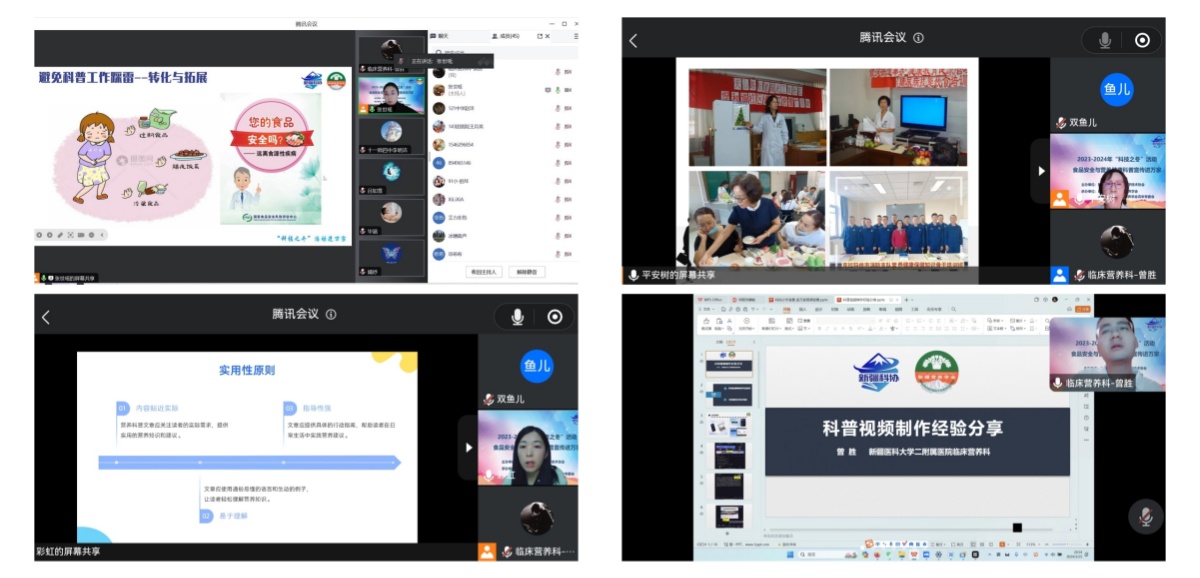 此次活動共招募涵蓋臨床醫師、公衛醫師、營養醫師、護士、高校及中學教師、在校大學生、在校研究生等來自全疆各地的112名志愿者,先后在2024年3月25-26日,圍繞平衡膳食指南解讀、Al科普視頻制作、健康教育及膳食指導心得體會分享、如何撰寫營養相關科普文章等內容,以線上(騰訊會議)培訓的方式開展。志愿者反饋培訓內容“干貨滿滿、接地氣”、獲益匪淺。