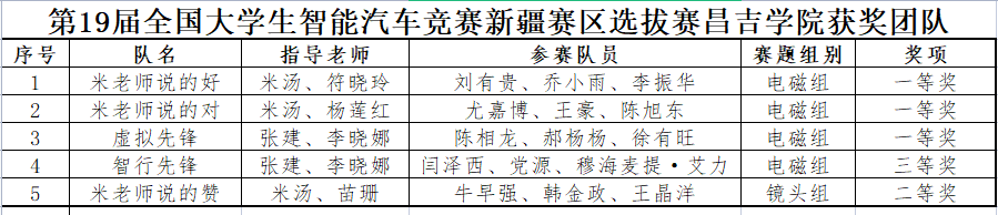 7月27至28日,第十九屆全國大學(xué)生智能汽車競賽新疆賽區(qū)選拔賽在昌吉學(xué)院順利舉行。本次比賽共吸引了來自新疆大學(xué)、伊犁師范大學(xué)、新疆理工學(xué)院、新疆工程學(xué)院和昌吉學(xué)院5所高校35支代表隊的66名選手參賽。昌吉學(xué)院派出6支隊伍參賽,共獲得5個獎項,其中電磁組一等獎3項,三等獎1項;鏡頭組二等獎1項。