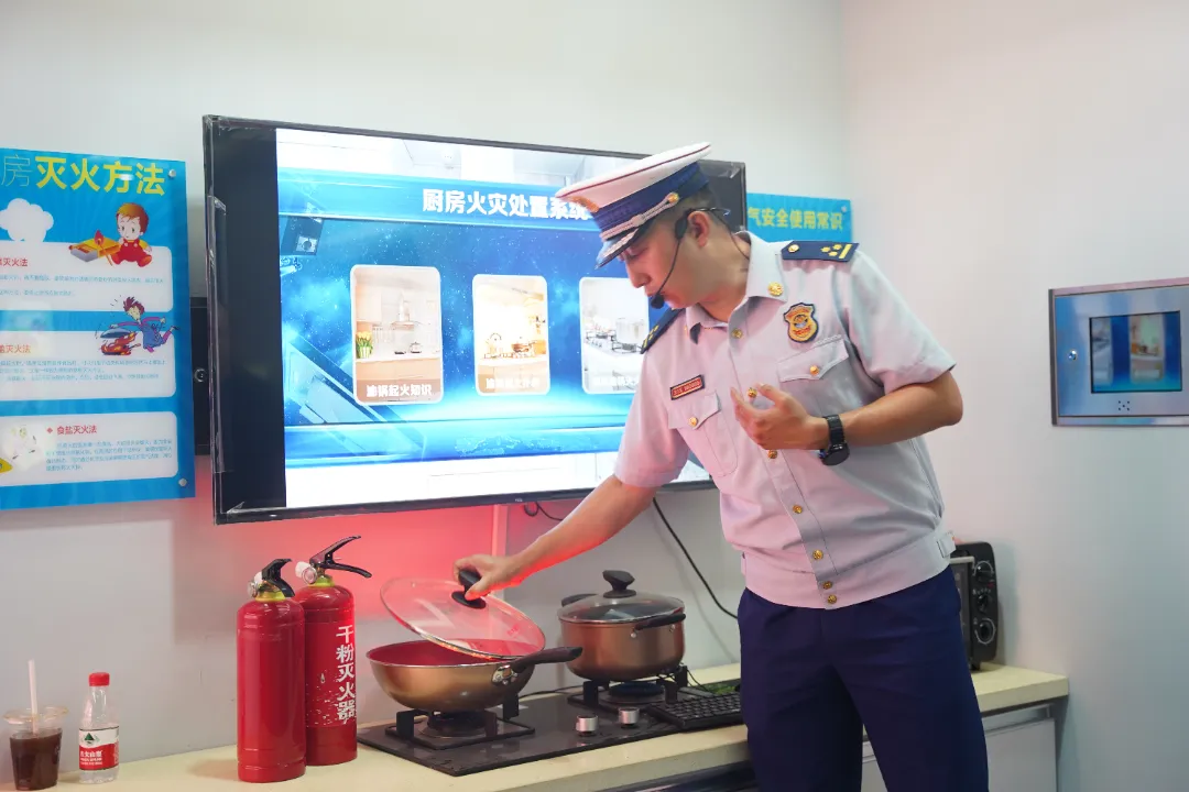 活動中,宣傳員對消防科普教育基地進行了介紹,并組織大家觀看了火災事故案例以及高層住宅如何逃生等視頻,學習了各類消防標識、常見的消防設施器材和消防安全隱患等內容,體驗了廚房火災處置、模擬報警系統、滅火器模擬體驗等設備,并就如何報警、如何撲滅初起火災和火場逃生自救方法等消防安全基本常識進行了學習。