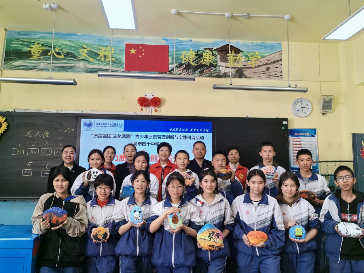 4月30日,新疆質量協會走進烏魯木齊市第四十中學,開展“質量強國 文化潤疆”青少年質量管理創新與實踐科普活動,本次活動以“魅力質量行,創意石頭畫”為主題,將青少年質量創新活動與學校特色石頭畫相結合,啟發青少年科學思維方式,強化實踐能力,養成想好了再干,一次把事情做好的良好行為習慣,助力青少年健康成長,成就美好未來。