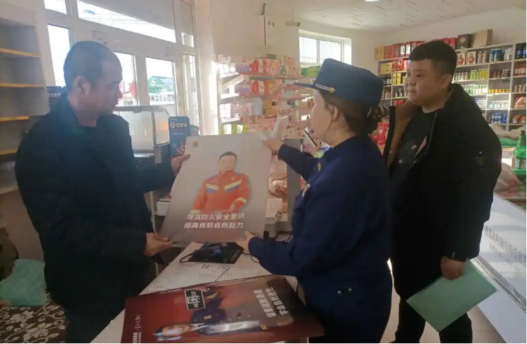 隨后,宣傳人員以進(jìn)商戶宣傳的方式,將宣傳手冊、海報(bào)等消防宣傳資料發(fā)放到商戶的手中,講解“冬季天氣寒冷干燥,用火用電用氣劇增,是火災(zāi)事故的高發(fā)期,一定要高度重視起來,如果不幸發(fā)生火災(zāi),切記要第一時間逃離火災(zāi)現(xiàn)場并及時撥打119,切勿貪戀錢財(cái)......”為廣大村民商戶全面普及了冬季防火知識,引導(dǎo)大家養(yǎng)成良好的消防安全習(xí)慣。
