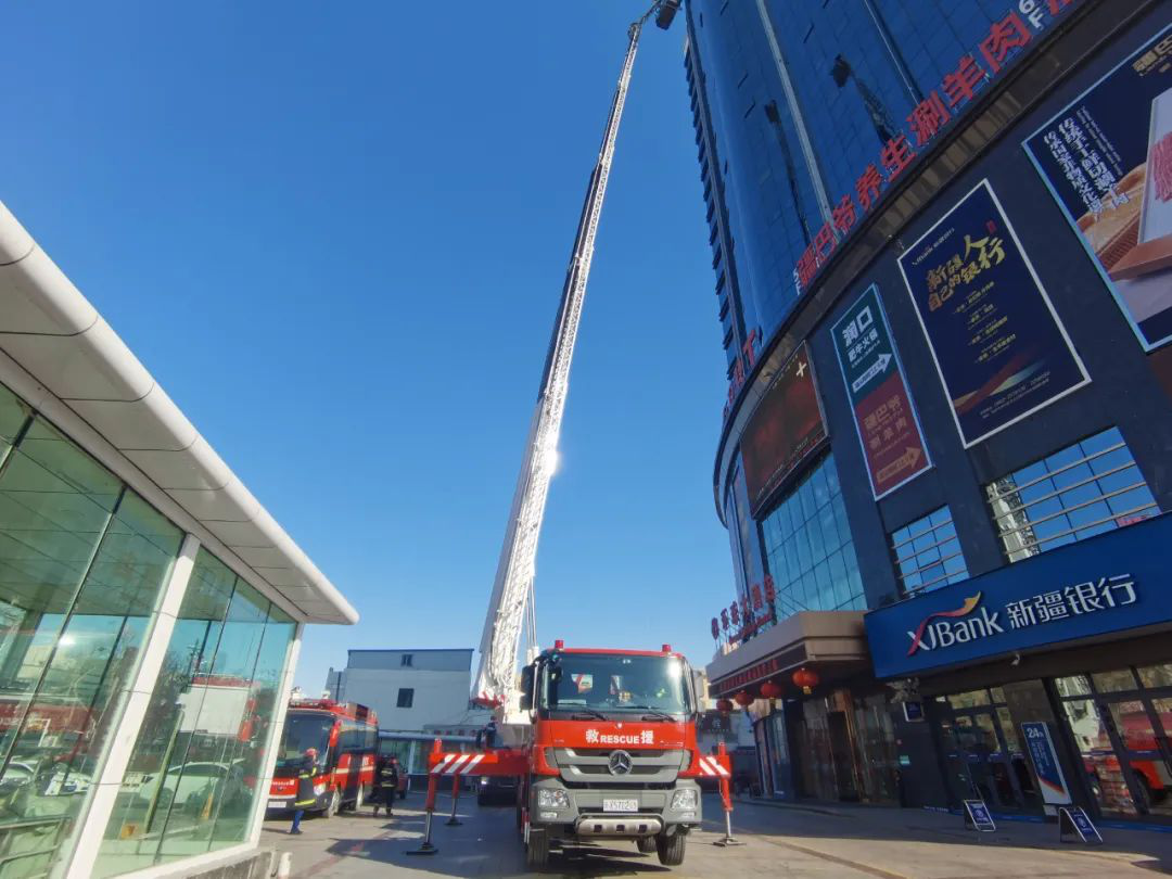演練假設(shè)多業(yè)態(tài)經(jīng)營場所環(huán)球國際發(fā)生火災(zāi),內(nèi)部可燃物較多,燃燒速度較快,產(chǎn)生大量濃煙,并迅速向樓上蔓延擴(kuò)散,造成多名人員被困。支隊(duì)指揮中心接到報(bào)警后,立即調(diào)派轄區(qū)北京路消防救援站、木卡姆大道消防救援站等力量到場處置,支隊(duì)全勤指揮部遂行出動,趕赴現(xiàn)場指揮滅火救援行動。