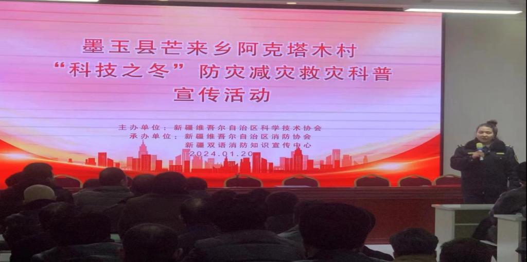 新疆雙語消防知識宣傳中心積極參與在和田地區開展的2023-2024“科技之冬”防災減災救災科普宣傳活動,活動受到了當地政府大力支持。