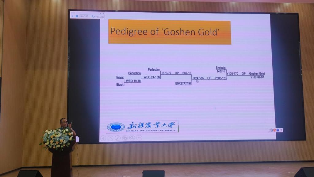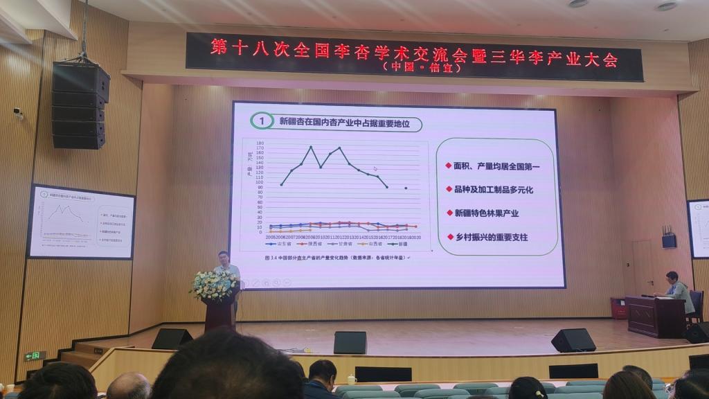 大會學術交流階段,王全輝、李莉、姜全等21名專家學者,圍繞生態低碳農業探討、新時代水果產業高質量發展思路、“輕騎兵+電商+金融”農技推廣創新模式助力三華李產業高質量發展等方面作了內容豐富的學術報告。新疆園藝學會理事何天明教授和謝輝研究員,在大會上分別作“美國杏引種和育種進展”“新疆杏產業發展現狀”報告。