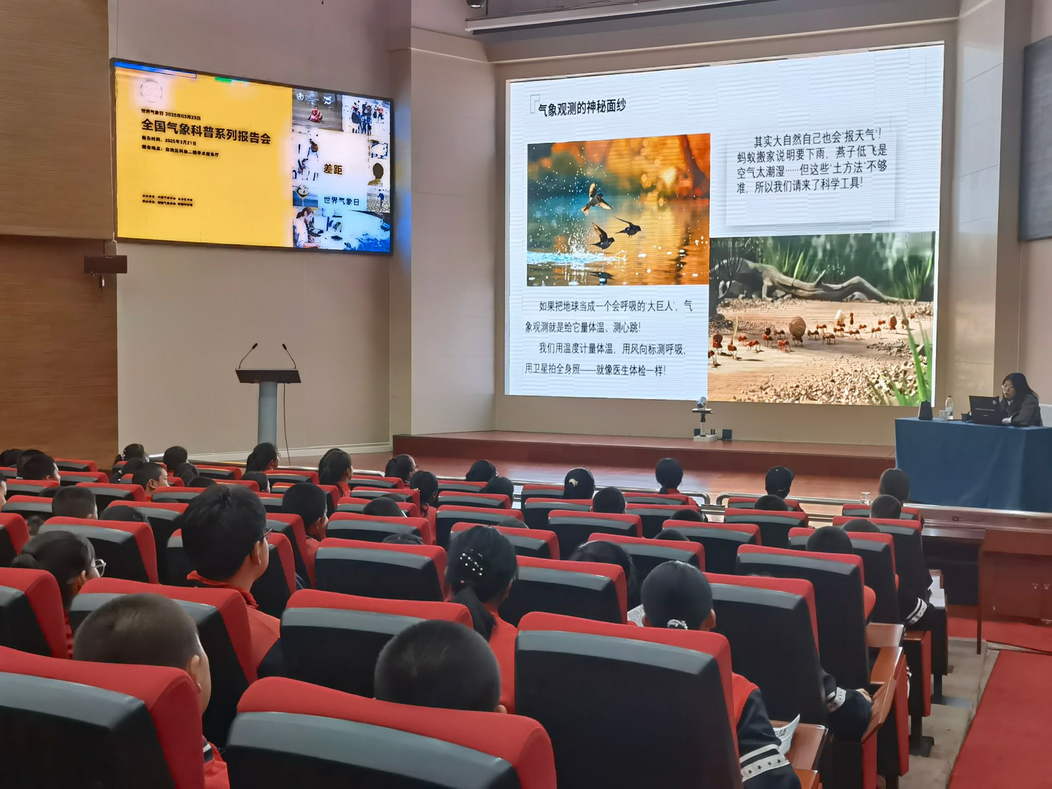 活動緊扣今年世界氣象日“攜手縮小早期預警差距”的主題,以科普互動講座、趣味實驗秀以及現代化氣象設備展示等形式為烏魯木齊市、奇臺縣等地4所學校的2500余名師生呈現了一場氣象科學“盛宴”。