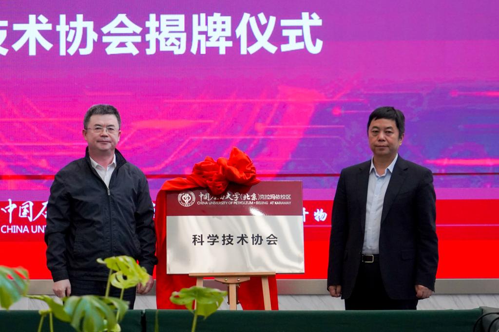 4月21日,中國(guó)石油大學(xué)(北京)克拉瑪依校區(qū)科協(xié)揭牌儀式舉行。自治區(qū)科協(xié)黨組書記王光強(qiáng)、一級(jí)巡視員海薩爾·夏班拜,克拉瑪依市委常委、組織部部長(zhǎng)陳科萍,市科協(xié)黨組書記程顯勝,中國(guó)石油大學(xué)(北京)克拉瑪依校區(qū)副校長(zhǎng)李軍出席揭牌儀式。揭牌儀式由中國(guó)石油大學(xué)(北京)克拉瑪依校區(qū)黨委書記、校長(zhǎng)梁永圖主持。