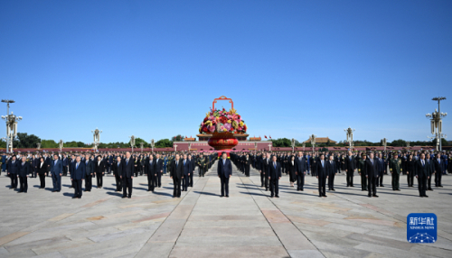 9月30日上午,黨和國家領導人習近平、李強、趙樂際、王滬寧、蔡奇、丁薛祥、李希、韓正等來到北京天安門廣場,出席烈士紀念日向人民英雄敬獻花籃儀式。新華社記者 申宏 攝