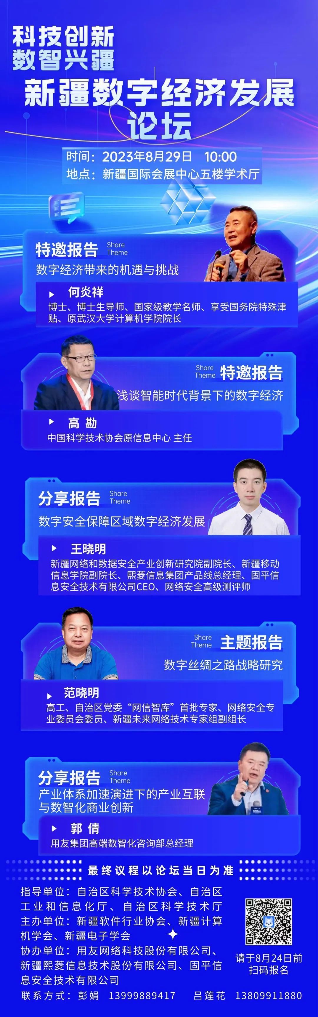8月29日(周二)10:00-14:00,由自治區科協、自治區工信廳、自治區科技廳指導,新疆軟件行業協會、新疆計算機學會、新疆電子學會主辦的“科技創新 數智新疆”新疆數字經濟發展論壇,將在新疆國際會展中心學術報告廳召開。