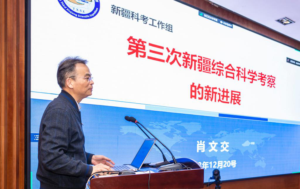 特邀報告環(huán)節(jié),中國科學(xué)院新疆分院院長、中國科學(xué)院院士、歐洲科學(xué)院院士肖文交研究員,中國科學(xué)院地理科學(xué)與資源研究所文區(qū)域發(fā)展首席專家、國際歐亞科學(xué)院院士方創(chuàng)琳研究員,中國科學(xué)院新疆生態(tài)與地理研究所穆桂金研究員分別以“新疆第三次科考成果匯報”“烏魯木齊市高質(zhì)量發(fā)展與現(xiàn)代化都市圈建設(shè)”“從文化昆侖到地理昆侖”為題作特邀報告。