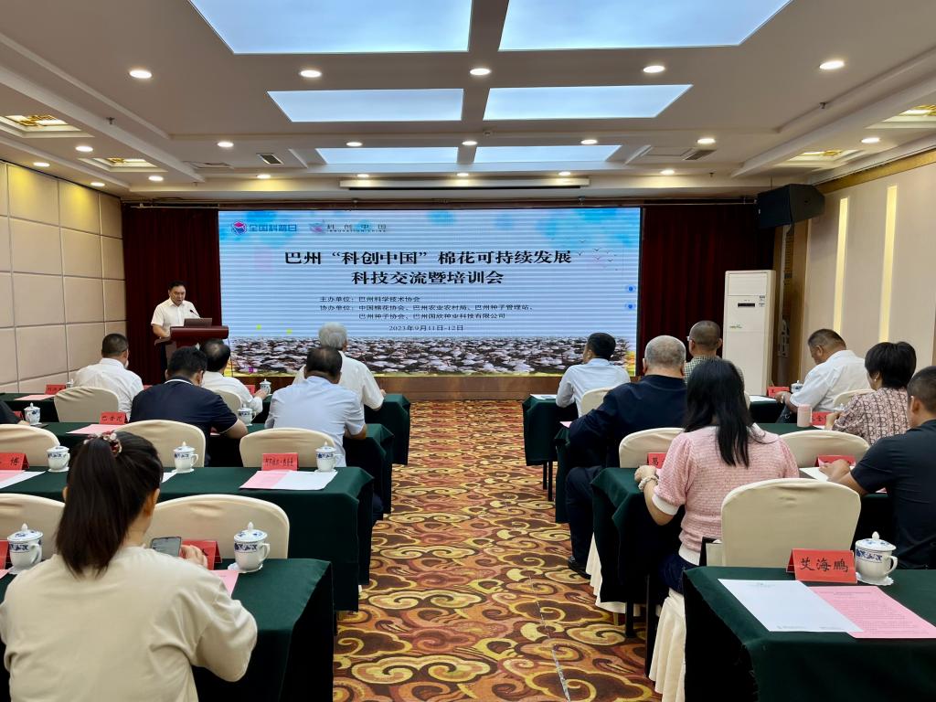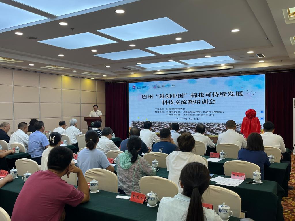 9月12日,由巴州科學技術協會主辦,中國棉花協會、巴州農業農村局、巴州種子管理站、巴州種子協會、巴州國欣種業科技有限公司協辦的巴州“科創中國”棉花可持續發展科技交流暨培訓會議在庫爾勒市召開。河北省科協黨組書記、常務副主席王海龍,河北省保定市科協黨組書記、主席孫增軍,國際歐亞科學院院士、河北省高端人才,國務院政府特殊津貼專家馬峙英,巴州黨委常委楊雪蓮、巴州人民政府副州長王廣林、巴州科協黨組書記李冬玲等出席會議,會議由巴州人民政府副秘書長劉江生主持。
