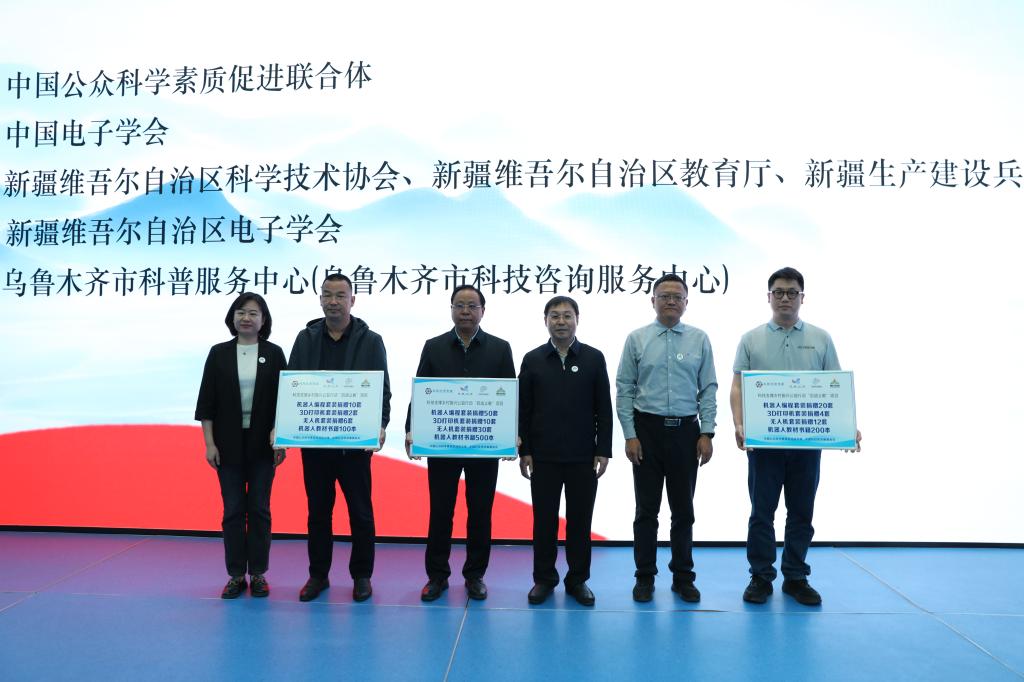 啟動儀式上,中國電子學會向受贈的中小學校代表和新疆青少年科技輔導員協會、葉城縣薩依巴格鄉科普館捐贈了科普教具、展具,并向中國電子學會科技志愿者總隊新疆分隊授旗。