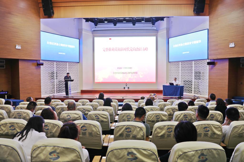 為深入學習貫徹習近平新時代中國特色社會主義思想,更好地把握并運用好新時代黨的治疆方略,在準確把握“學思想、強黨性、重實踐、建新功”的總體要求中,推動主題教育高質量落實落細,7月3日上午,自治區科協開展新時代黨的治疆方略專題輔導。自治區黨委黨校教授郭益海應邀作《完整準確貫徹新時代黨的治疆方略》主題教育專題輔導。自治區科協黨組成員、副主席李鳴、姑麗娜爾·吾布力,二級巡視員劉洪巖參加。