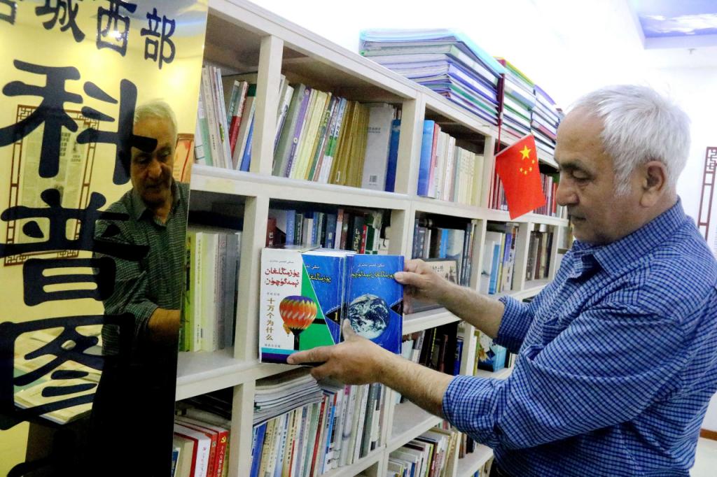 阿地里·阿不都熱合曼在科普一角整理書籍