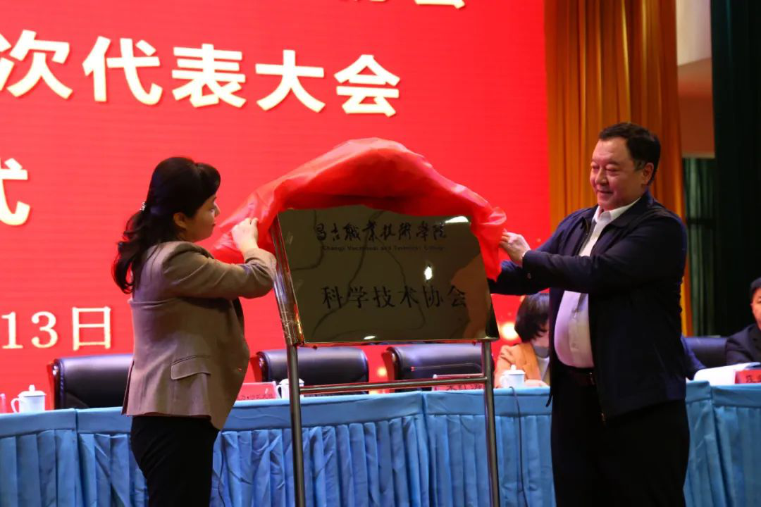 大會在莊嚴的國歌聲中開幕,趙學經宣讀了《昌吉州科協關于同意昌吉職業技術學院成立科學技術協會的批復》,葉爾波力·沙比尤拉和朱紅濤共同為昌吉職業技術學院科學技術協會揭牌并作講話。