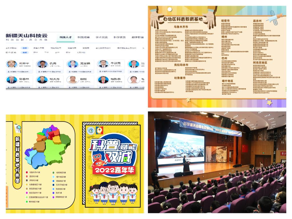 抓舉措,促“雙減”結果。建“一圖一庫一日歷”,打造“雙減”中央廚房。“一庫”即是組建新疆青少年科普教育專家資源庫,遴選出181名青少年科普教育專家,做好學生課后服務;“一圖”即是繪制“科普地圖”,把全疆的科普資源按地區(qū)匯集成地圖;“一日歷”即是統(tǒng)籌全區(qū)各廳局單位及協(xié)會全年舉辦的70項重點青少年科普教育活動,為便于學生“雙減”課后科普需求,按照時間進程制作成科普日歷。采取線上“點單下單”模式,搭建 “開放、全域、普惠、共享”的科普服務平臺。與此同時,會同有關單位和部門,開展全疆最具影響力的青少年科技節(jié)活動,為青少年科技后備人才培養(yǎng)搭建展示平臺,激發(fā)了廣大青少年崇尚科學、探索未知、敢于創(chuàng)新的熱情。