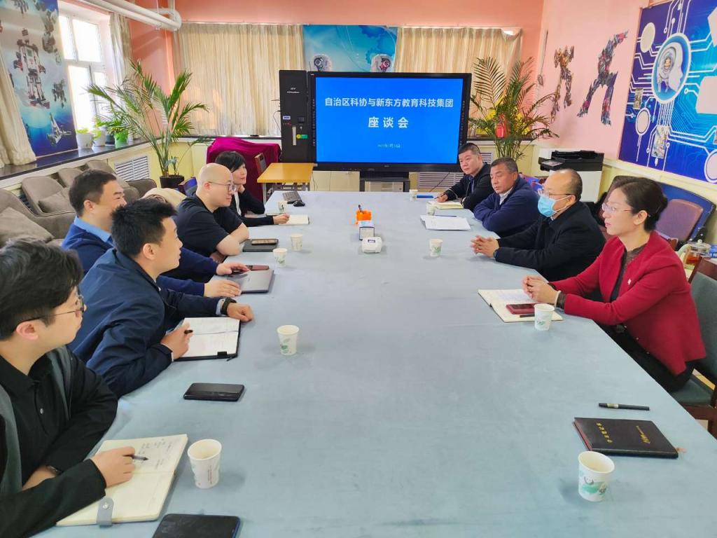 3月24日,自治區科協黨組成員、副主席李鳴與新東方教育科技集團助理副總裁、智慧教育事業部總經理柴明一一行,圍繞新疆青少年科學俱樂部合作運營、鄉村青少年科學工作站建設、科技輔導員培訓等事宜開展座談交流。