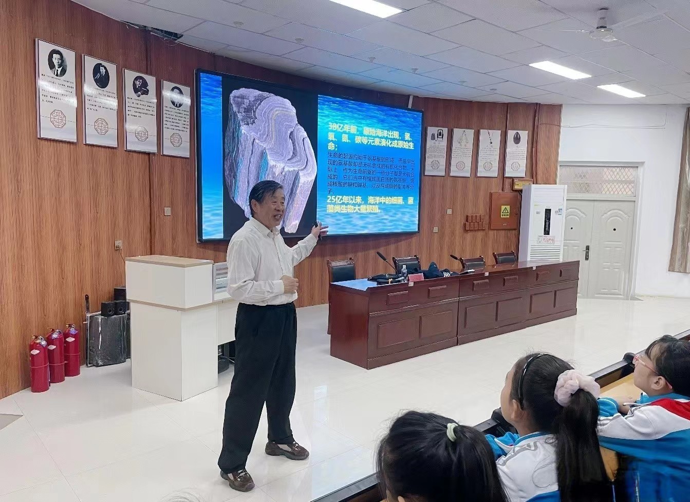 中國科學院老科協(xié)研學導師團副團長、中國石化石油勘探開發(fā)研究院教授級高級工程師、中國地質(zhì)學會地質(zhì)學史專業(yè)委員會副主任、國際地科聯(lián)地質(zhì)學史專業(yè)委員會委員戴進業(yè)老師來到若羌縣第一小學,作了題為《探秘海洋》的科普講座。戴老師從地球起源說起,介紹了海洋形成、海洋地貌、海洋生物以及海底礦產(chǎn)資源。戴老師深入淺出的講解,使同學們了解到海洋方面的科學知識,開闊了學生視野,提高了對海洋科技的興趣。