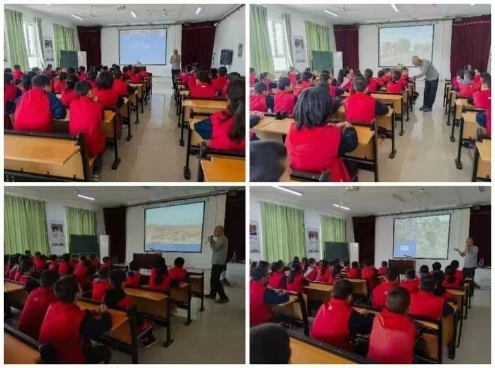 研學導師團的李承森、戴進業(yè)、馬清溫、肖方四位專家為若羌4所中小學的孩子們作了4場科普報告,涉及植物學、動物學、地質(zhì)學、能源學與環(huán)境學等多學科領域的科學知識和科學精神。中國科學院老科協(xié)科普講師團與研學導師團團長、植物所研究員李承森老師走進若羌縣中學,作了題為《走進南北極,探秘冰雪世界里的生物與環(huán)境》報告。李老師以自己八次走進南北極經(jīng)歷,介紹南北極自然環(huán)境、動植物多樣性,并以生物與環(huán)境變遷之間的密切關系講述大自然的美妙神奇。大量精美圖片展現(xiàn)出大自然之美,給同學們帶來一場生物及地理的科學盛宴。