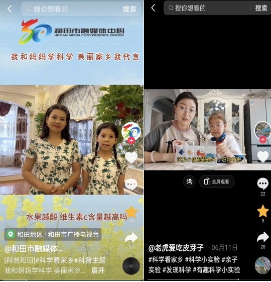 和田地區科協聯合地區婦聯,動員七縣一市科協、婦聯積極開展“我和媽媽學科學 美麗家鄉我代言”活動,在全地區掀起了學科學的熱潮。“全國十佳”視頻作者、和田市第一小學學生邁爾丹江表示:“學習科學對我來說是一件充滿吸引力的事,能跟媽媽一起學科學不僅豐富了我的假期生活,增長了見識、才干,還在學習過程中增進了母子感情,可謂是收獲頗豐!以后的活動,我也一定會更加積極參與。”
